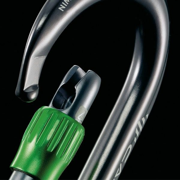 Nimbus Lockはコンパクトながらフル機能を備えたHMSカラビナです。独自のスフィアロックノーズ形状は安全性向上と共に、ロープやウェビングのクリップを容易にします。またロック機構には安全性向上のため、セーフティマークを施し視認性を高めています。