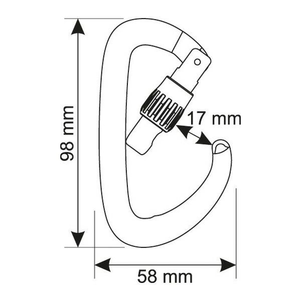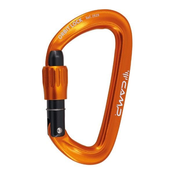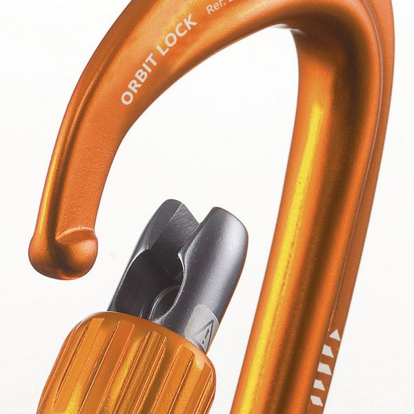 Orbitのボディをスクリューロックにしたカラビナ。重量を増やすことなく強度が向上しました。 スクリューが回しやすく、ゲートとともに鋭角な角のない形状となっています。 ※視認性の高いセーフティ・マーク印字あり