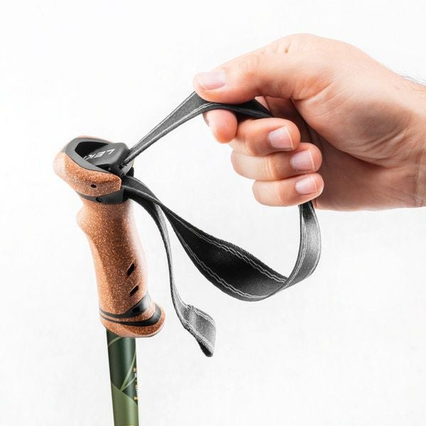 LEKIトレッキングポールには速乾性に優れたポリエステルのストラップを採用しています。薄くてしなやかなスキンストラップは、手にしっくりとなじみ、素手でも違和感なく握れます。