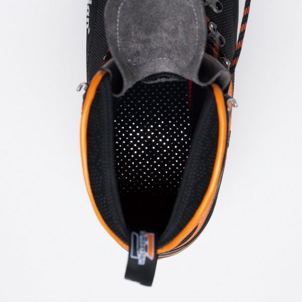 ダブルブーツ構造を採用し、取り外し可能なインナーには9.0mm厚マイクロファイバー断熱素材にアルミ蒸着を施して保温性を強化しました。 アッパー素材は、岩などの擦れに対して高い耐摩耗性を発揮する高強度のスーパーファブリックとマイクロファイバーを採用。アッパーのかかと上部にフレックスノッチを施すなど、足首の自由度を高めているため、テクニカルなシーンでもパフォーマンスを発揮します。また、足首屈曲部のフックには、シューレーシングがしっかり留まるセルフロッキング機能を備えました。 ※ワンタッチクランポン装着可能