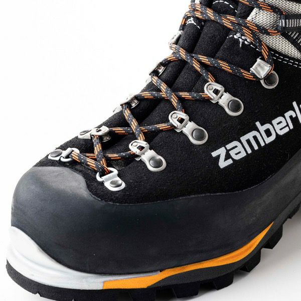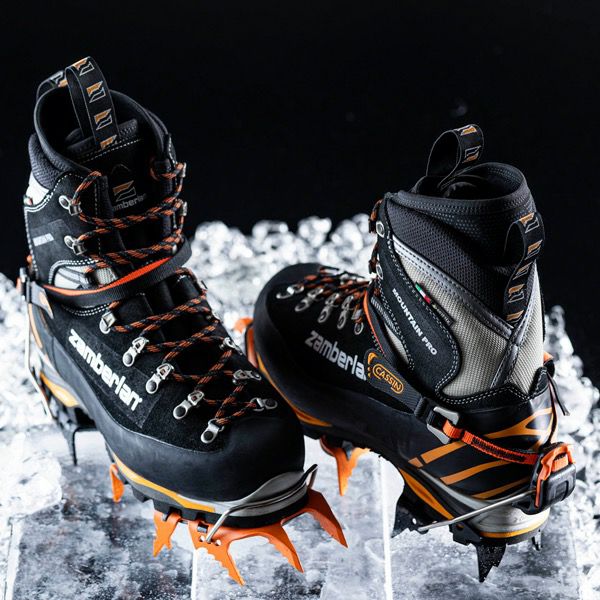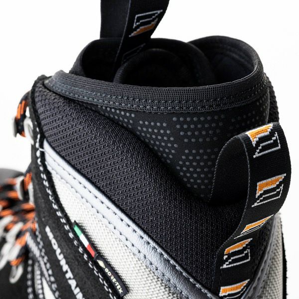 防水加工を施した2.6~2.8mm厚の堅牢なペルワンガーレザーを贅沢に使用。足首まわりにはコーデュラナイロンを部分使いし、柔軟性を高めています。ライニングは保温性に優れた【ゴアテックス・インシュレーテッドコンフォート】。ミッドソールは衝撃吸収性に優れる2層構造のポリウレタン、アウトソールは【ヴィブラム Penia】を採用し、歩行性能も強化しました。また、インソールボードは軽量で剛性の高い5mm厚カーボンファイバーインソールを採用し、ワンタッチクランポンの装着も可能です。メンズモデルより細めのレディスフィットラストを採用し、足形がスリムな女性にもフィットしやすい設計です。またダブルタン仕様なので、ひとりひとりの足形に応じてフィット感を微調整することもできます。 ※ワンタッチクランポン装着可能 ※下記説明の写真はマウンテンプロ EVO GT RR PU M'sモデルになりますが、機能性はレディスと同じです。