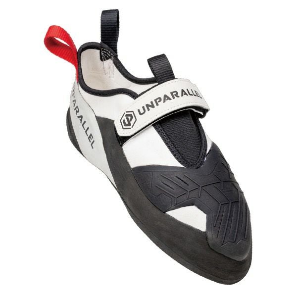 ・土踏まずのフィット感を高めるアーチサポートスリングショットと、シンプルかつ耐久性の高いシングルベルクロとスリップオンボディが足全体にしっかりとフィットし、あらゆるフットワークでクライマーの入力をスムーズに伝達