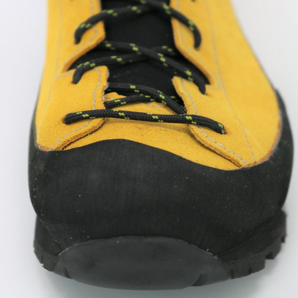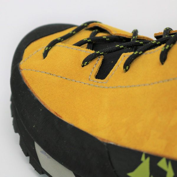 アッパーはスエードレザーを採用、岩などとの耐摩耗性を向上させるためにランドラバーで保護しています。