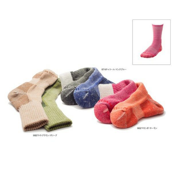 つま先やかかと部分などは補強され、表面にナイロン糸が多くくるようにすることで、耐摩耗性に優れた特長をもたせています。メリノウールの使用によりふんわりとした肌触りで、リラックスできる履き心地の良い2足組ソックスです。