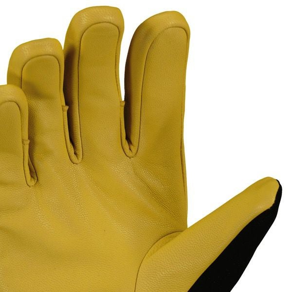 フリース生地を裏地に使用した冬場の作業に最適なワークグローブです。リブカフ仕様で手首からの冷気をシャットアウト、ゴートレザーと化繊生地の組合せにより手が動かしやすく操作性にも優れます。