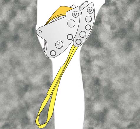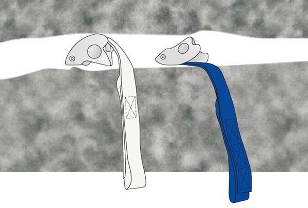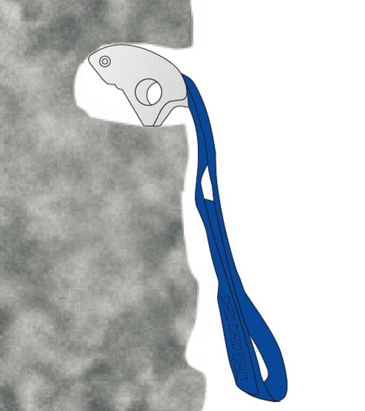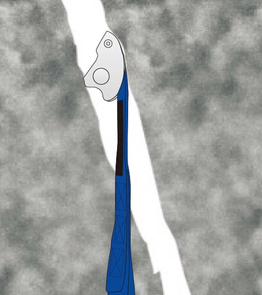 ナットツールまたはハンマーで「くさび」として1~2 回下向きにタップすることで、トライカムをより確実に固定することができますが、これはトライカムをハーケンとして使用することになります。 トライカムを「タイトフィットする」状態で使用すると、非常に安全で、スリングにしっかりと固定すると、かなりの外向きおよび上向きの力にさえ耐えることが出来ます。