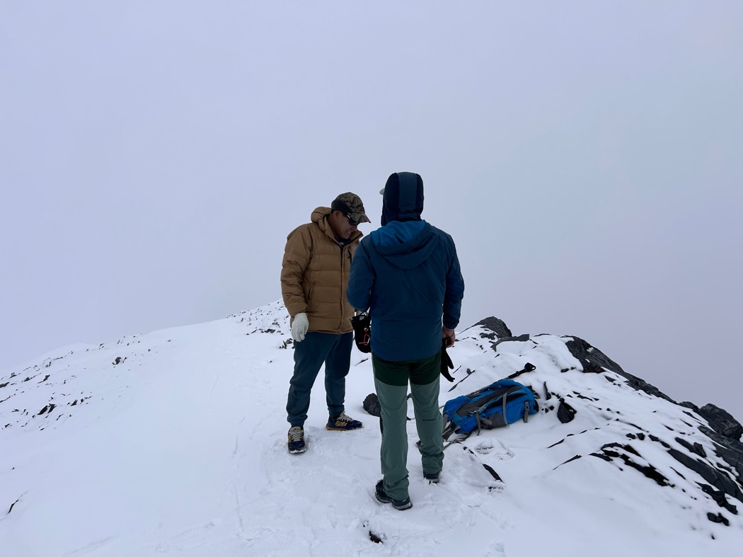 朝の寒さに身体がやられ、鼻水を啜りながら夕飯の準備を行なった。この1日で2人ともだいぶ消耗し、頭痛に加え、青木は多少の吐き気を感じていた。天気予報を衛星で確認ながら明日からの行動を話し合った。予報では明後日から崩れるらしい。天気が保つのは明日までの見込み。この稜線で天気が荒れるのは想像以上に厳しいだろう。下手したら動けなくなる可能性もある。山頂まで標高差800m。最初のミックス帯を超えてしまえば傾斜は一気に緩くなる。私たちは、明日に山頂アタックをすることに決めた。