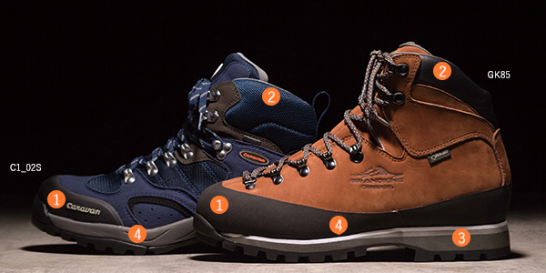 キャラバンの登山靴には、山を快適に歩くための優れたテクノロジーが数多く採用されています。 入門者向けのモデルには、不整地を長時間歩くために必要な適度な剛性を確保しながら、柔らかな履き心地と歩きやすさを追求。 上級者向けモデルでは、岩稜帯での確かな歩行性と3シーズン対応のさらなる高機能性を実現しています。