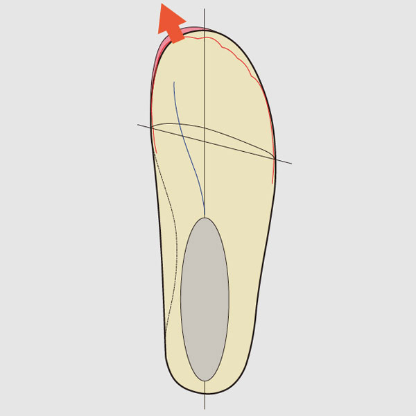 母趾の空間を広げることで、母趾の動きを妨げず、安定した着地感をもたらせます。