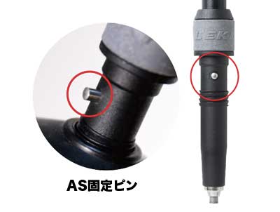 LEKI社のスピードロックシステムは、シャフトの径全体を締め付ける構造で、固定力が高いのが特長です。また、一部分だけを締め付けることによるシャフトの歪みが発生せず、安定した固定力が得られ、固定力の調整自体もダイヤル部で簡単に行えます。