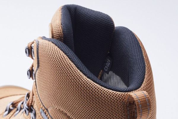 登山初心者の方には足首が動きやすいよう、アキレス腱部分を浅くカットしたトレッキングシューズが使いやすく、おすすめです。