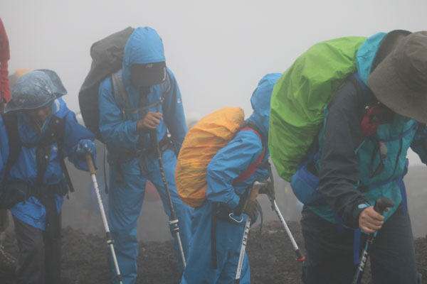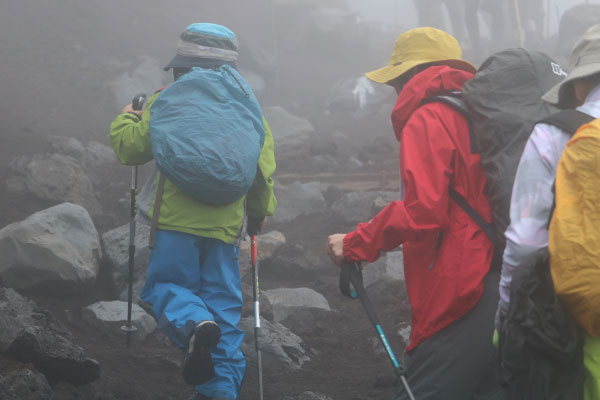 晴れた日は汗をかき砂埃を浴び、雨の日は泥汚れなどに見舞われる富士登山。下山時の着替えを忘れないように。