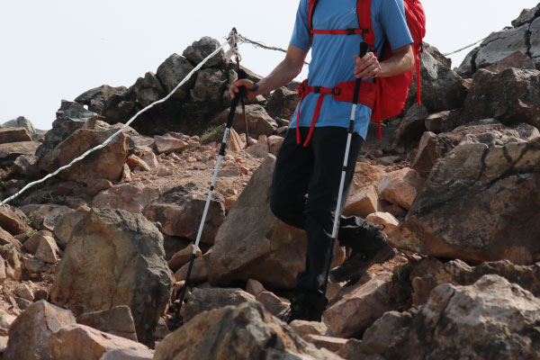 登山時の下半身への負担軽減、下山時の膝への負担軽減、荷物の重さをポールに分散できる、バランスがとりやすくなるなどのメリットがあり、疲れを軽減することもできるので非常におすすめです。
