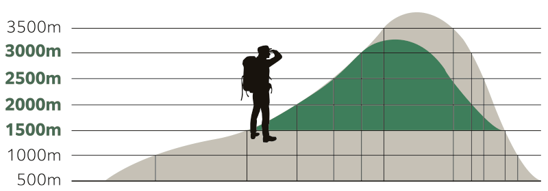 北アルプス岩稜帯など3000m級の縦走、山小屋、テント泊を要する重装備登山。